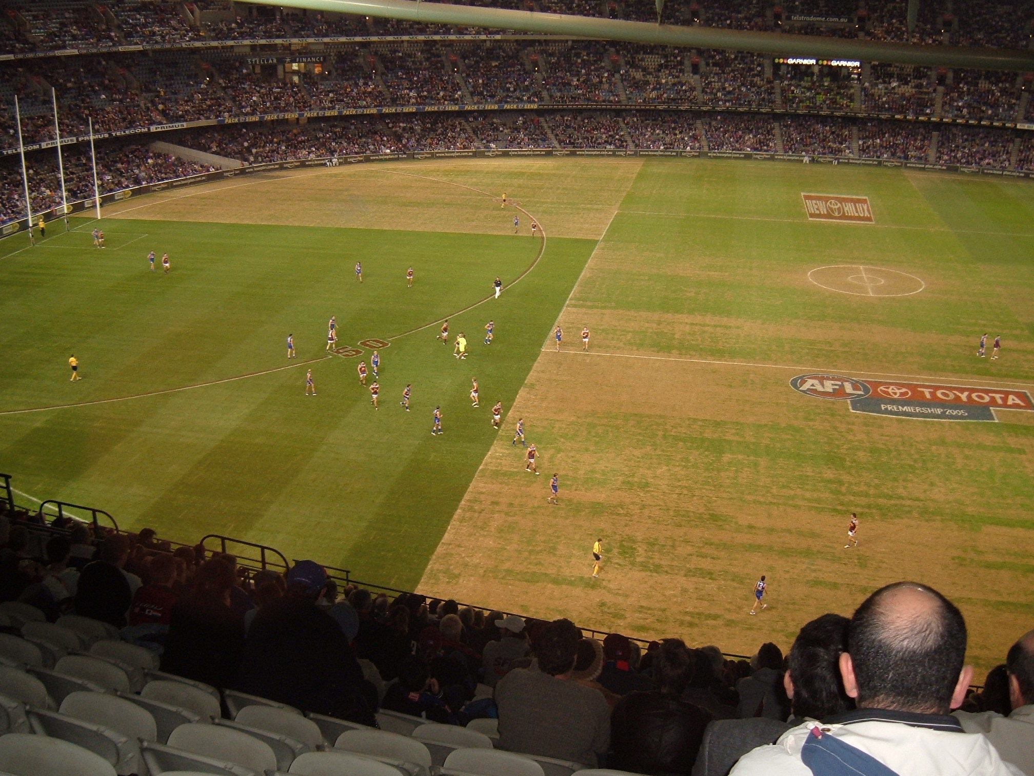 Boot Happy Snap #1 Posted on October 13, 2011 by theholyboot Docklands Stadium circa 2005- Western Bulldogs v Brisbane. The turf clearly modeled on the mans hair in front of me! The surface has certainly improved at least visually! Share this: Click to share on X (Opens in new window) X Click to share on Facebook (Opens in new window) Facebook Like Loading... Related