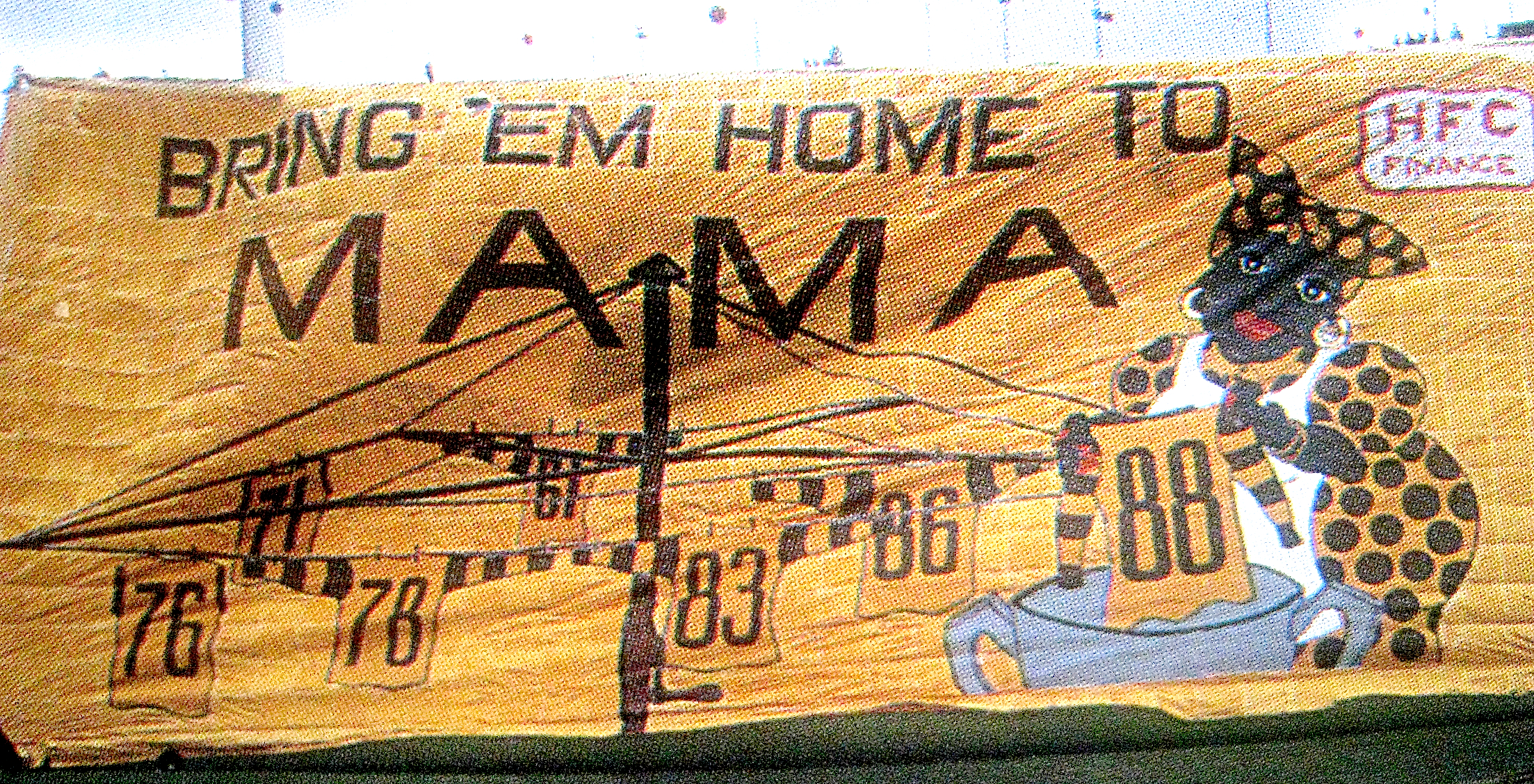 The 1980’s saw one team in particular dominate. Hawthorn played in seven consecutive grand finals from 1983-1989, winning four flags along the way. They followed this with another flag in 1991. They expected success. Their grand final cheersquad’s banners give evidence of that. The following banners are cocky yet clever….and very artistically put together.
