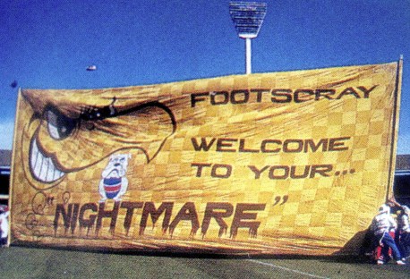 2. I think the Hawthorn run through banner “Welcome to your nightmare” would have been far more effective if Footscray had been forced to run through it. No doubt the Hawthorn cheer squad would have preferred the Doggies to run onto the ground first to see the banner in all its intimidating glory. (Davo)