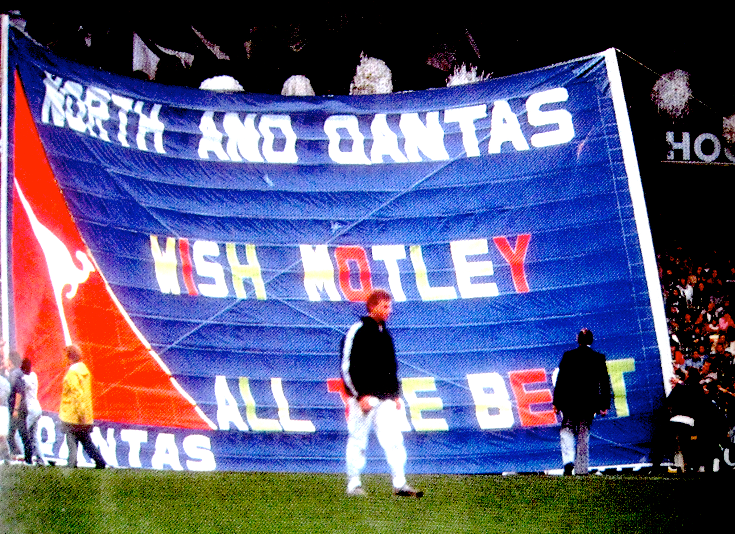 The photograph below strikes me on a number of levels. Firstly, as Pete Motley was a Carlton player tragically injured in a car accident which ended his playing career, to see an opposition club devote one side of their banner is touching. Secondly, in the background we see the rest of the North cheersquad sitting and the darkened second tier of the old souther stand. I loved it up there.