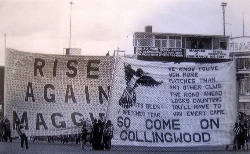 When it comes to Collingwood you either love them or the opposite. However, you must appreciate their ability to have a laugh at their own expense. This banner came a short time before they broke their 1958 premiership drought.