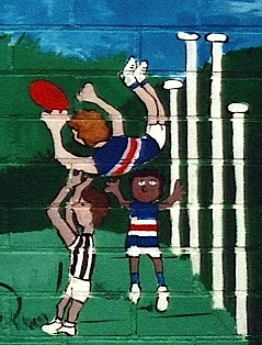 What was a bit special about this drawing however was that it was ‘immortalised’ upon the dunny wall at Blackburn primary school, the same dunny where I had my 1991 BPS premiership photo taken. Amid flutes, skipping, flowers and trees, all lovely, sits this footy gem, or at least sat. The toilet block was demolished some years ago.