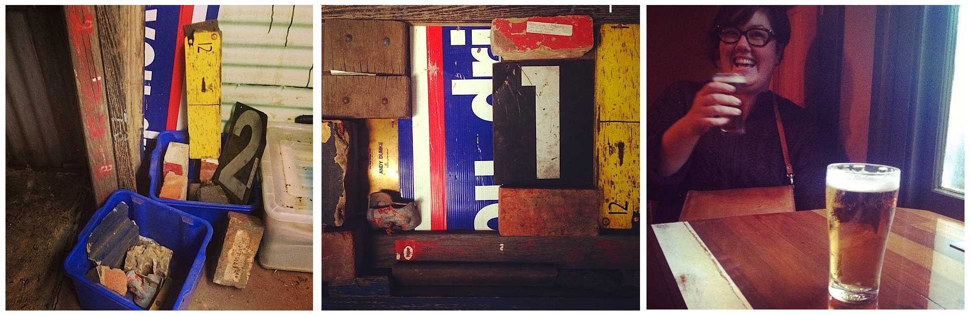 Inspiration: Bits and pieces from football grounds I have collected over the years which I toyed with turning into some sort of installation art piece (middle). Also, Ash and I enjoyed a beer at a Williamstown pub last year where the table tops were made from an old basketball court.