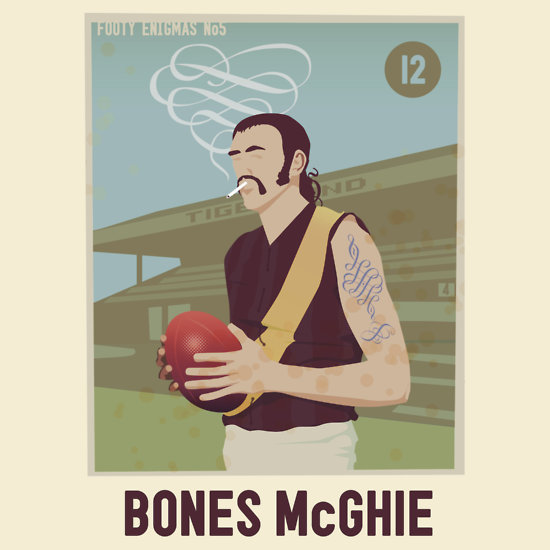I said that there was a champion or two in the mix, and Peter McKenna certainly fits the bill. With his mop-top of hair and a short lived career as a singer, McKenna’s finest work was still done out of the goal square dressed in black and white. However he fits the quirky nature of this range of t-shirts.