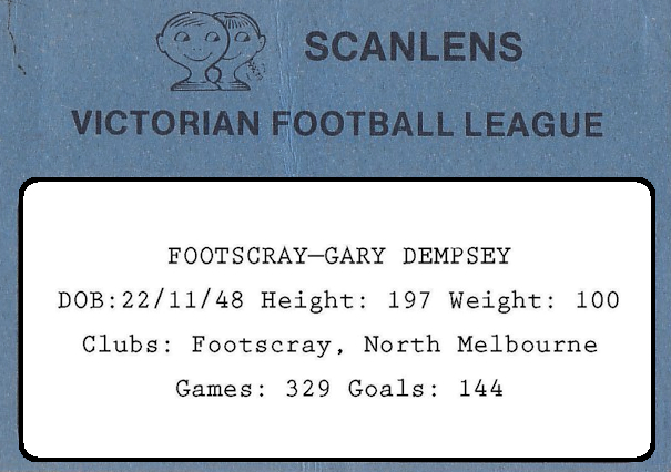 I really like Rees’s explanation on why he chose Gary Dempsey as Footscray’s 70’s enigma. “I picked Dempsey on his record – not the Brownlow medal but his club Best and Fairests, six in eight years. It sounds like he was carrying that club.”