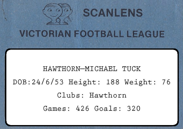 If ever there was an enigma, it was Michael Tuck. He has played the most games of league football in history, virtually an extra season’s worth than his nearest rival Kevin Bartlett. Consider also that he also played 50 games in the reserves before consolidating himself in the senior side! Remarkable longevity.