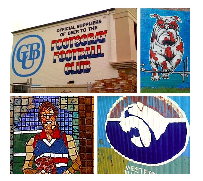 This is Doug Hawkins first of two appearances in this post, fitting given the connection he appeared to share with fans. He was one of them in a way. This is one small part on a wall outside Footscray City College, a large mosaic depiction of Footscray. Above Doug is some fantastic old advertising on the Rising Sun Hotel (now apartments…nearly), over the road from the Western Oval, while other street art around Footscray shows a great love for the dog. There’s even a Dancing Dog cafe!