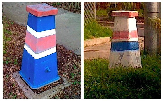 Living in Footscray, it’s hard to ignore the fact that as a Richmond supporter, I am in ‘enemy territory.’ (I’m actually quite partial to Footscray!) Unlike a lot of clubs, there is still a strong link between the suburb and the footy club. When I came across the below fire hydrants, I decided to do a little tour of the village in search of red, white and blue.