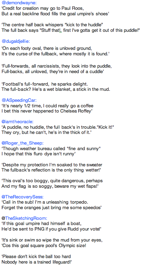 They say that a picture tells 1000 words, but to spin that notion on it’s head, I put the call out on twitter yesterday to capture the essence of this image in just 140 characters in the form of an ode, a verse, a rhyme or a little ditty. And I was not disappointed.