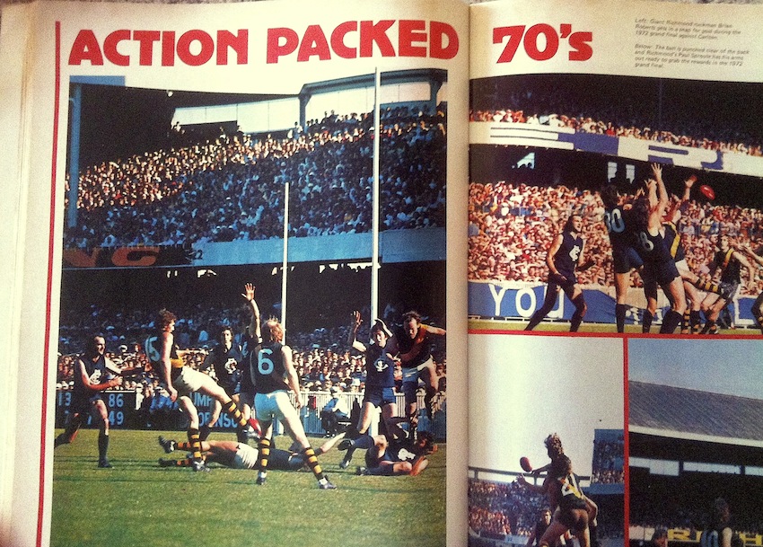 Football was utterly magical to me as a kid, and I’ve spent much of my adult life chasing that magic, be it emerging myself in the history of the game, the old grounds, looking at footy through my kids eyes or clinging to traditions. And as much as I adored Richmond and the footy, there was nothing that quite gave me that childlike buzz of sitting in the old southern stand, of ‘around the grounds’ score updates, of mud, footy replays, tears on Brownlow night and the smell of a freshly lit cigarette on the terraces.