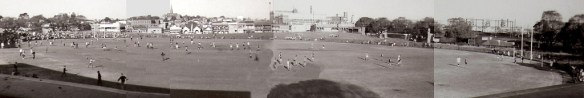 One occasion was his photos post siren of the 1967 grand final, another from Kevin Barlett’s 400th match, both times taken from the middle deck of the old Northern Stand. The other is slightly more obscure, but none-the less significant. Dad, a teen at the time, had heard rave reports of the Tigers new signing from Tassie, Royce Hart. So he headed to Punt Road for the Richmond intra-club match, and was so excited that he brought his camera. Dad took several snaps from the recently demolished cricketers stand, and luckily he took enough that I was able to piece them together some years ago to form the below panoramic view of Punt Road circa 1966.