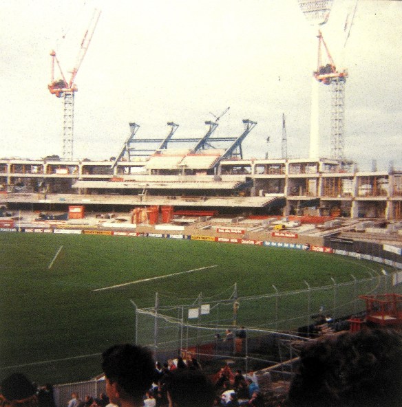 So here we have the Great Southern Stand, obviously under construction. The year is 1991, and things have changed dramatically at the ‘G from a year earlier. I can’t remember if this was the game against Sydney or St.Kilda as we sat in the same spot for both, but the focus here is clearly on the enormity of the impending structure, now looked down upon by the Ponsford, Olympic and MCC stands. And when looking at the ‘G in this 1991 state, I automatically think of the enigmatic Allan Jakovich.